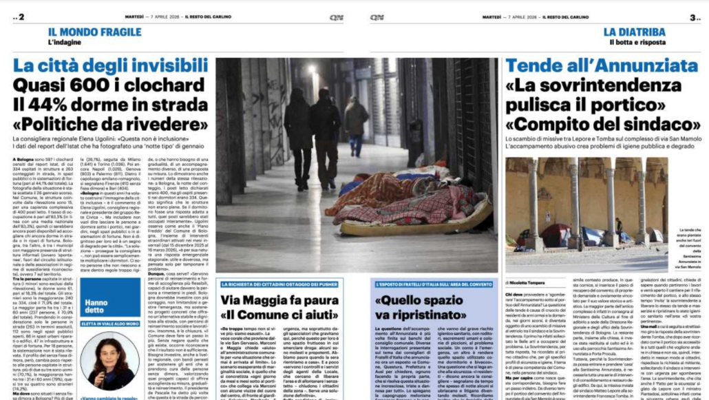 Sono numeri che meritano una riflessione seria. Bologna in questi anni ha voluto costruirsi l’immagine della città inclusiva. Ma includere non vuol dire lasciare le persone a dormire sotto i portici, nei giardini, negli spazi pubblici o in sistemazioni di fortuna. Non è dignitoso per loro ed è un segno di degrado per la città.
