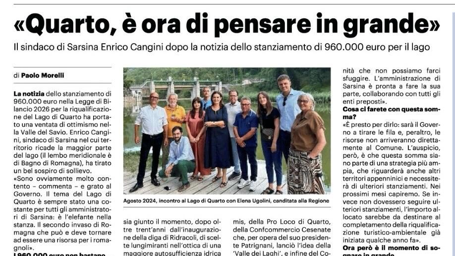 Sono risorse preziose che permetteranno di trasformare il Lago di Quarto, che ormai è quasi del tutto interrato, in una cassa di espansione per il Savio. L’obiettivo è ridare nuovamente a questa zona un lago, prevenire possibili alluvioni future e costruire un prezioso serbatoio di acqua potabile.